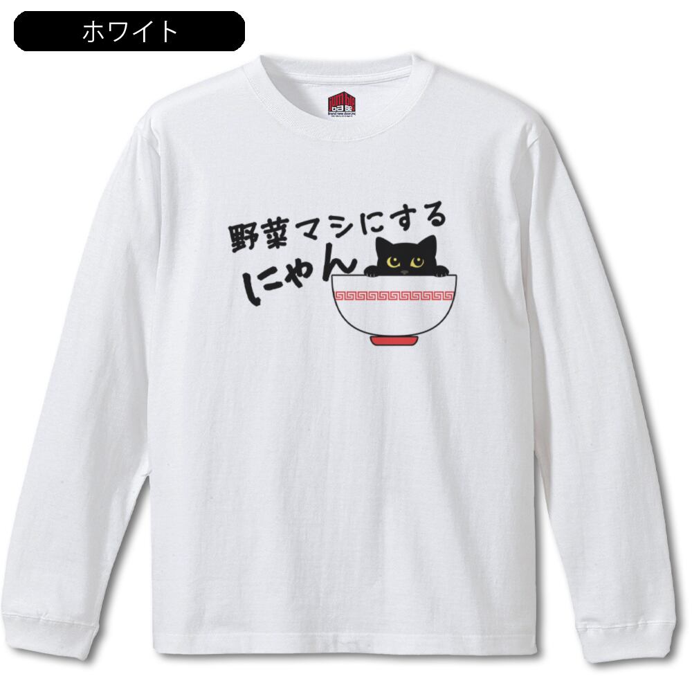 【野菜マシにするにゃん 長袖】 ラーメン猫Tシャツ