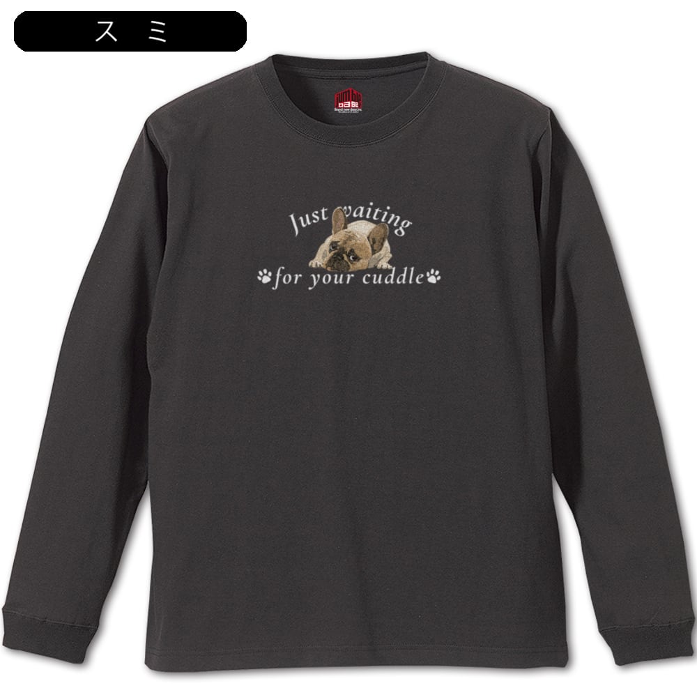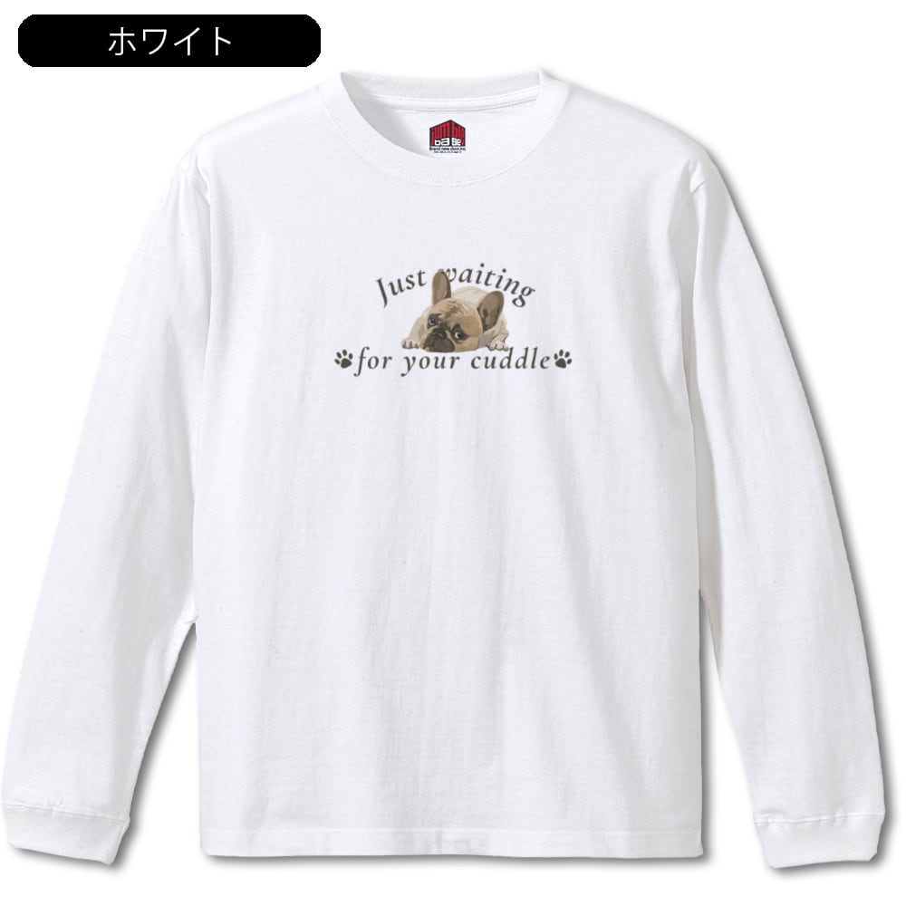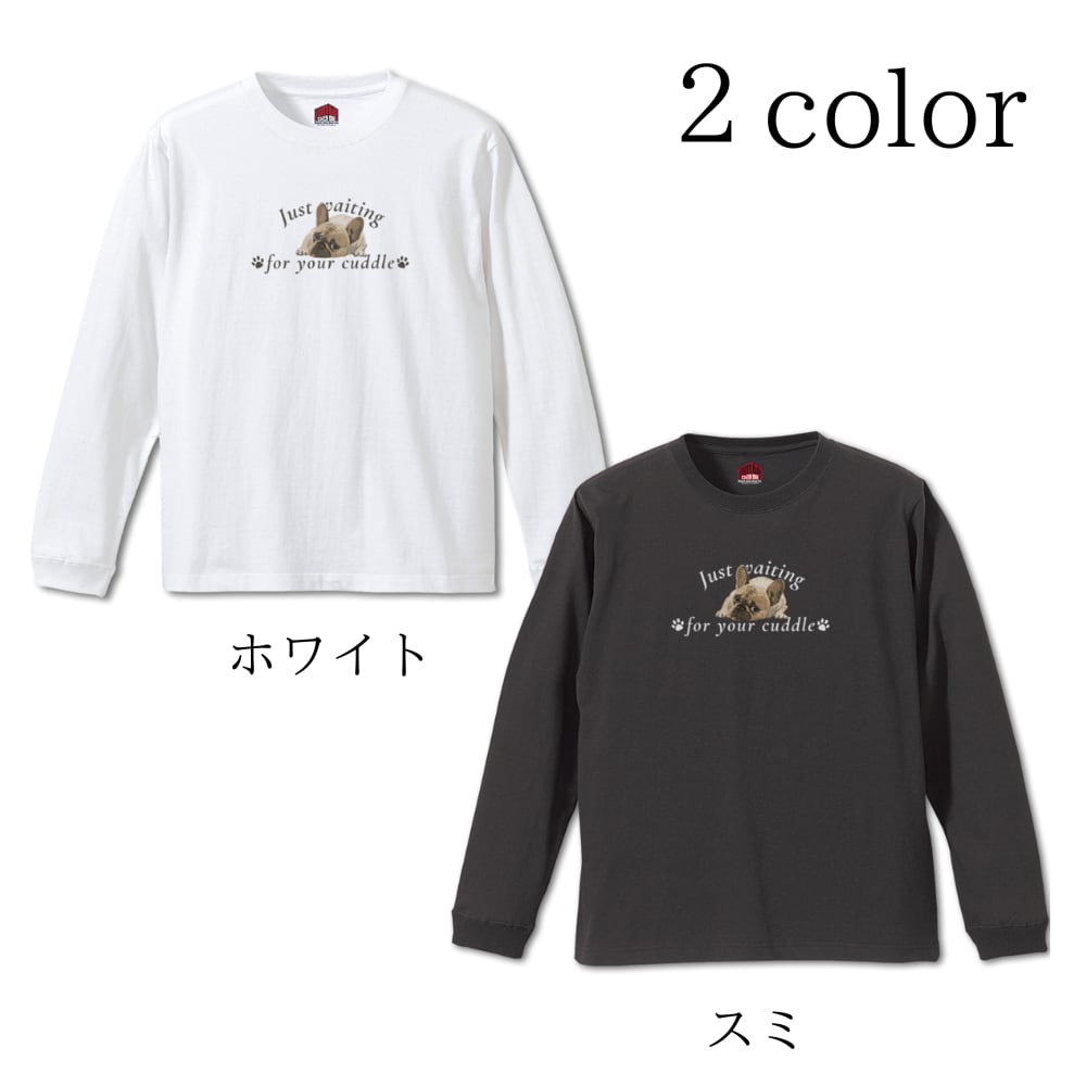 抱っこをおねだりするフレブルが愛らしい長袖Tシャツ。
