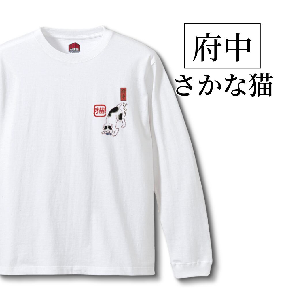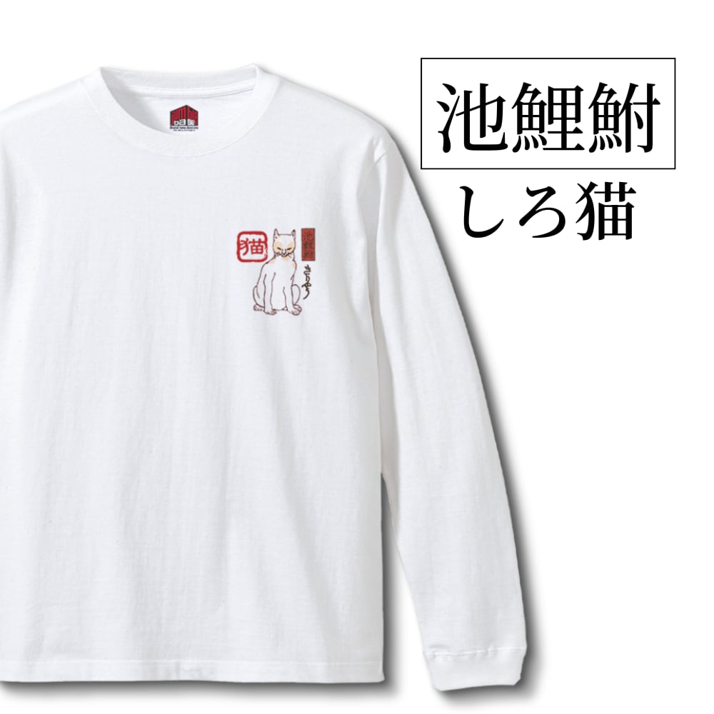浮世絵風 和猫ワンポイント長袖Tシャツ