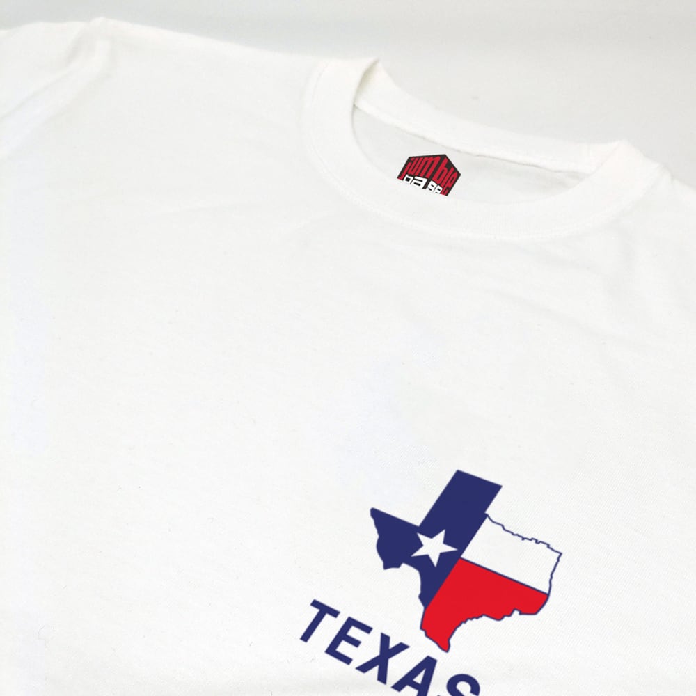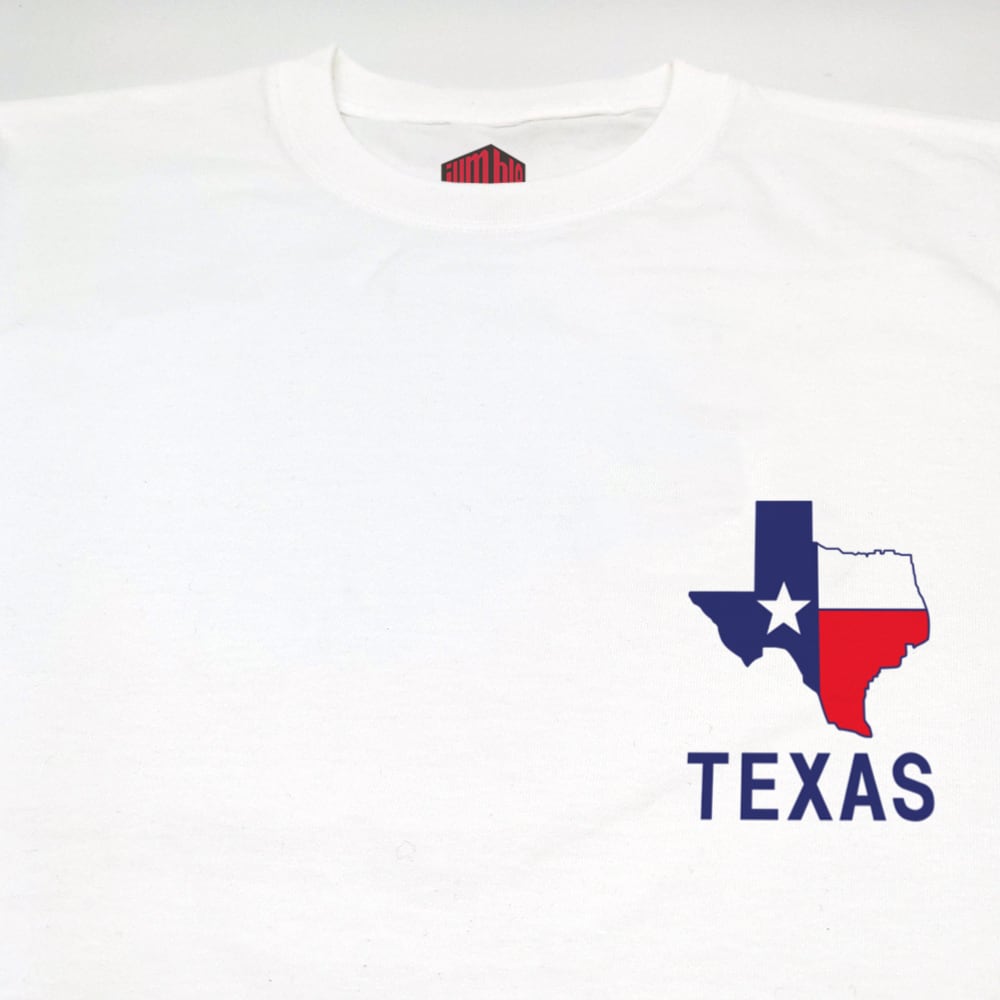 アメリカ・テキサス州の州旗と州の形を掛け合わせたワンポイントが特徴のTEXAS Tシャツ!
