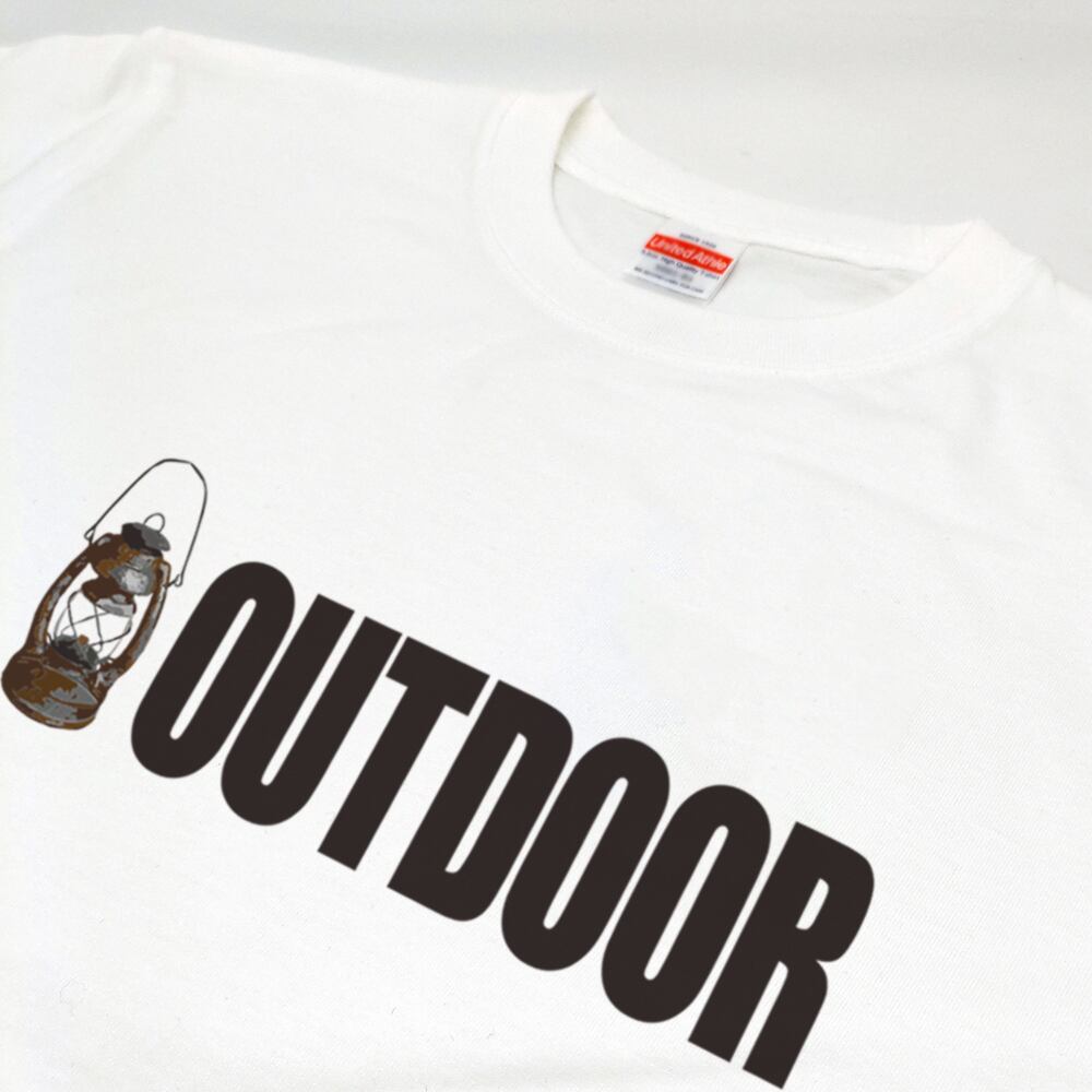 人気のアンティークなランプとOUTDOORのロゴが目をひく、シンプル&かっこいいTシャツ。