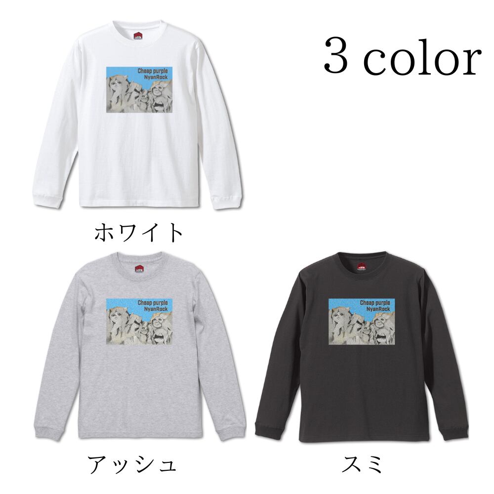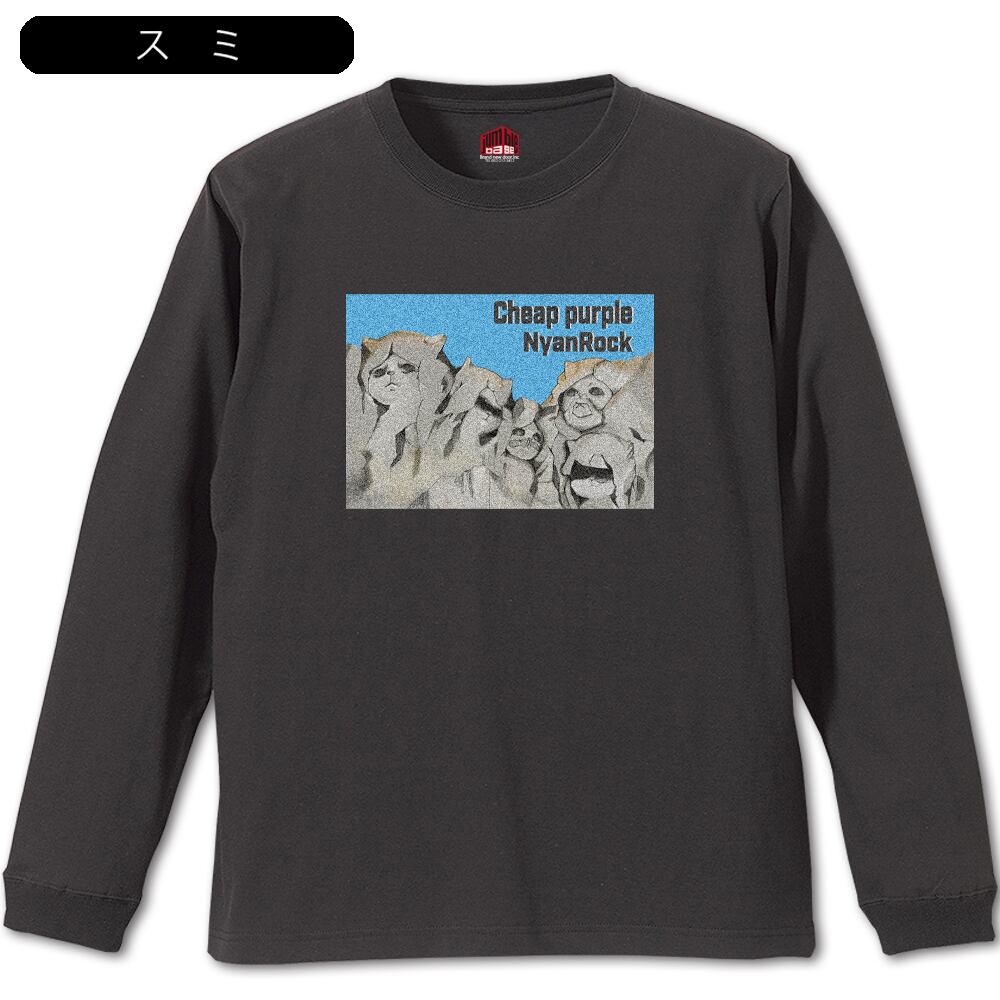 【Cheap purple 長袖】 にゃんロックTシャツ