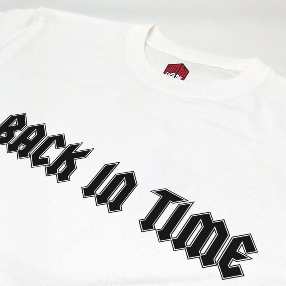 おーた社長と佐野瑛厘さんがmid-FMで送るラジオ番組、『BACK IN TIME』のロゴが入ったコラボTシャツになります。